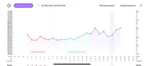 Je temperatuur bevestigd pas 3 dagen na je ovulatie de eisprong omdat je dan 3 opeenvolgende dagen een verhoging in de temperatuur hebt tov de basislijn voor je menstruatie. Ik vraag altijd ChatGPT om het uit te leggen of stuur dan screenshots en daarmee kom je een heel eind (al zegt soms ook wel echt bullshit dus je moet goed blijven opletten en doorvragen).