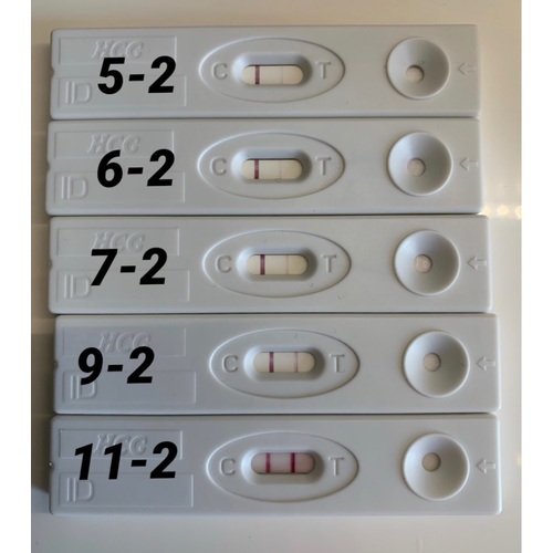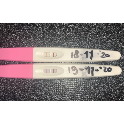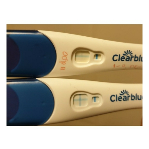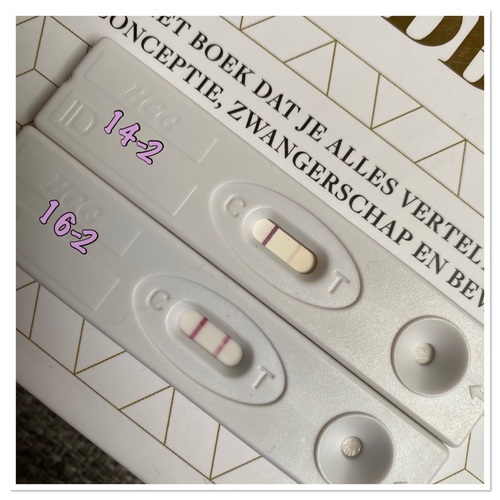 Boven 11 dagen dpo en onder 13 dagen dpo. Ik had een korte cyclus, op 9 dpo was mijn nod, op 10 dpo al duidelijk positief met een early test maar die foto kan ik even niet vinden. Maar 13dpo komt dus meer overeen met de nod van iemand met een normale cyclus.