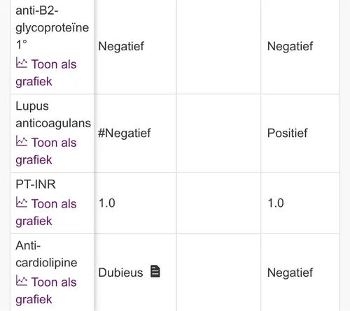 Ik moest na 3 maanden weer bloedprikken en ik ben nu ineens negatief. En ben nu dubieus op anti-cardiolipine.