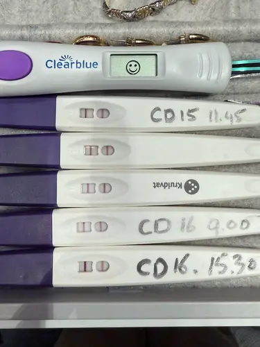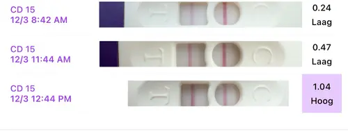 Goedemiddag dames! Ik ben begonnen met testen. Ik test altijd met CB (paars) en extra met ovulatie testen van de Action. Nu gaf de Action vanochtend vroeg 2 dikke strepen. Ik had geen urine opgevangen dus net om 12:30 met Action en CB getest. Maar de CB geeft nog steeds een leeg rondje aan. En het streepje van de Action is ook veel minder. Dus dat betekent dat ik nog niet eens in m’n vruchtbare dagen zit. Ik weet even niet wat ik nu moet volgen. Hebben jullie dit ook gehad? Ik heb met m’n vorige 2 zwangerschappen altijd getest met CB. Action werkte toen ook minder goed