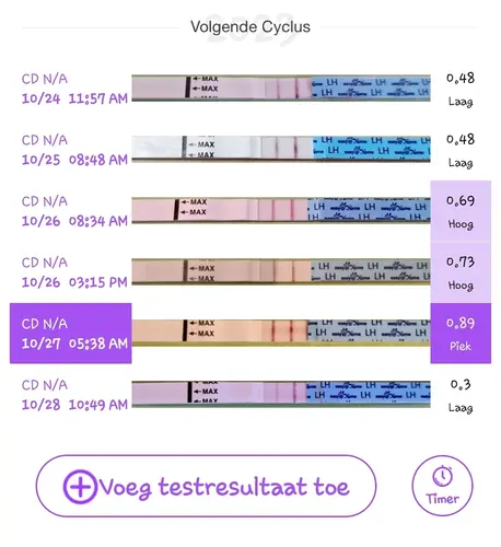 Dit was mijn PreMom app in 2023. Zonde rde app was ook wel duidelijk geweest war de piek is, maar sommigen testen vaker of hebben een wat geleidelijker verschil en dan is een app als deze wel handig (die meet het contrast).