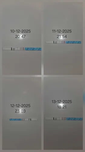 Hi! Deze testen zijn niet positief. Je kunt de PreMom app gebruiken (volgens mij gebruik jij Easy@Home, die hoort bij deze app), die kan aflezen welke test je piek aangeeft, heel handig! Over het algemeen moet de teststreep even donker zijn als de controle streep, maar soms mis je hem bet en dan is ie b铆jna even donker. Ik denk dat jij nog net voor (of na) je positieve test zit. Er zit ook altijd een gebruiksaanwijzing bij 馃き