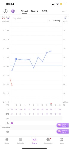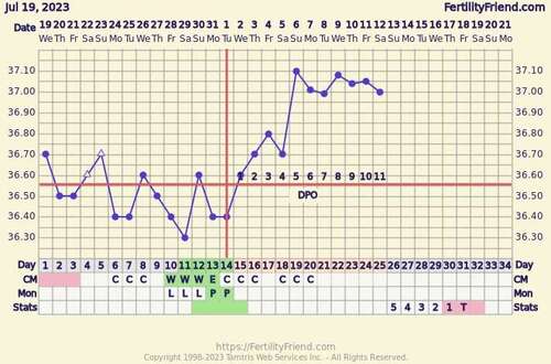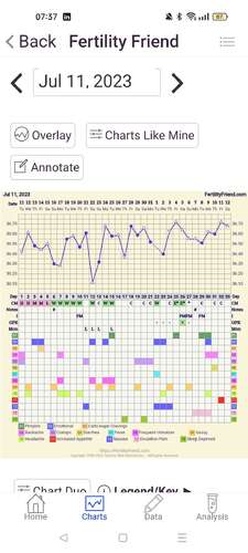 Ik weet niet of mijn temperatuur nu vrij stabiel is omdat hij nog best wel zakt en stijgt. Mijn eisprong was 4 aug. Ik was deze keer voornamelijk bezig te ontdekken hoe mijn cyclus eruit ziet omdat ik vorige maand ineens een cyclus van 35 dagen had en normaal altijd 29 dagen.
