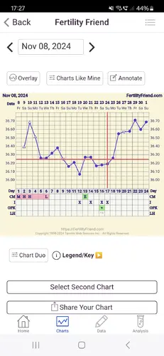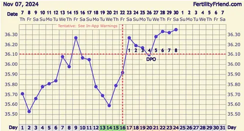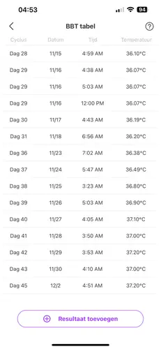 Ik zit vandaag op dpo 8 en zijn een weekend weg voor mijn man ze verjaardag expres geen Thermometer mee genomen note relaxen ben er toch mee bezig . Ik dacht ik kijk wel even naar mijn temperatuur via de Apple Watch en wat denk je precies vandaag had ik iets niet goed staan is de meting niet uitgevoerd