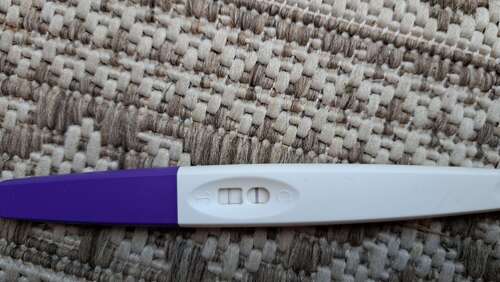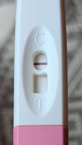 Dit is de zwangerschapstest op de 15e. Moet wel zeggen dat met het opdrogen ...