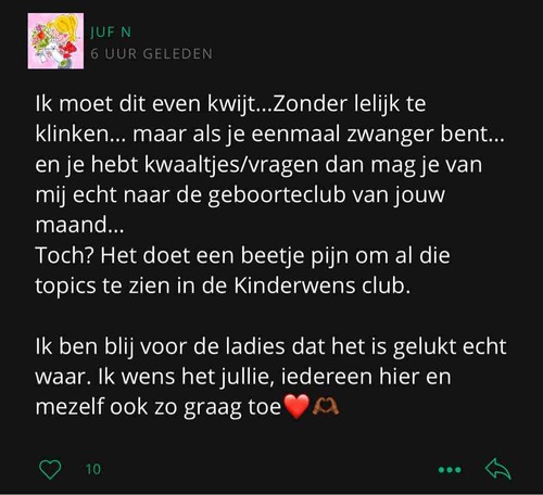 Het is alleen niet de juiste plek om er allerlei vervolgvragen over te stellen. In de geboorteclubs verwacht ik ook nog meer respons op die vragen dan in 'kinderwens'. Dus het is inhoudelijk ook echt handiger naar mijn idee.