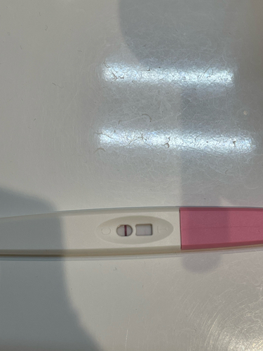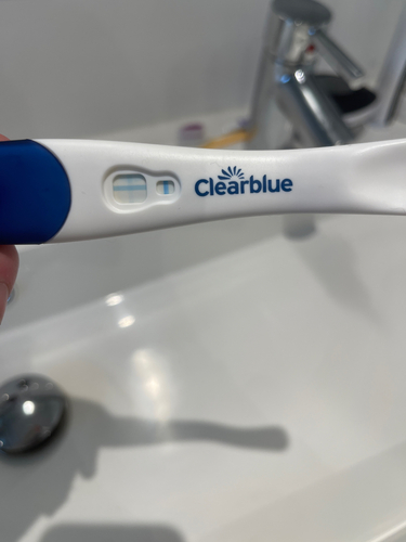 Ik wou een digitale van clearblue halen maar daar ben ik gisteren helemaal niet meer aan geraakt. Had wel hier thuis nog een gewone van clearblue liggen dus die heb ik juist even met ochtendurine gedaan.