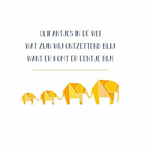 Wij hebben op het geboorte kaartje een hele mooie tekst van Elton John- Your song gezet. En we hebben 3 geometrische olifanten op de voorkant gezet, want in een olifantenfamilie is de moeder de baas! ;p