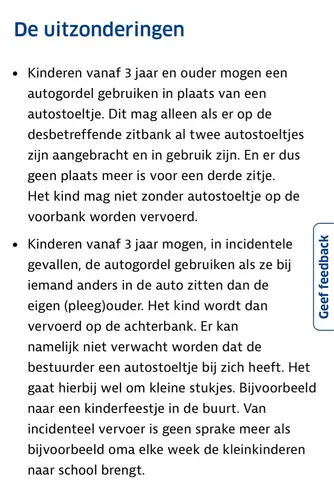 Op de we site van de ANWB lees ik dat een 3e kind pas zonder stoeltje mag a ...