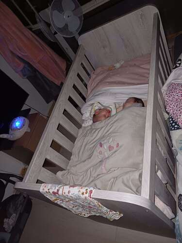 Werd vanuit ziekenhuis, kraamzorg en verloskundige afgeraden om ze snachts samen in een bedje te doen.. Dus daar hebben we maar braaf naar geluisterd 🙈😅