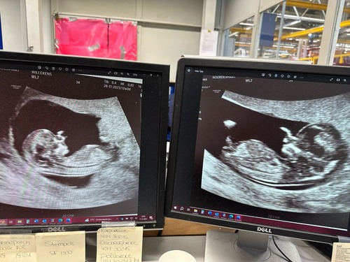 Bij de 13 weken echo konden ze al zien dat we een jongetje kregen. De echo's die volgde lag de andere steeds met de kont naar ons toe en wisten we pas bij de 20 weken echo dat wij een zoon en dochter zouden krijgen