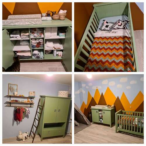 Ik heb toen vooral naar praktisch gekeken en gekozen voor stuva commode en ledikantjes. Omdat je daar veel opberglades in hebt en het bedje een meegroeiledikant was.