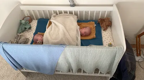 Wij hadden ze de eerste weken in een aparte wieg maar merkten dat ze overda ...