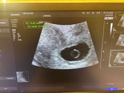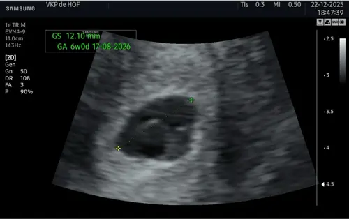 Op 15 december had ik een vroege echo rond 5 weken, omdat er twijfel was over een mogelijke buitenbaarmoederlijke zwangerschap vanwege klachten.