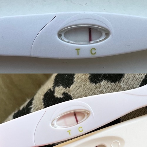 Ik dacht vanochtend: M’n menstruatie is er nog niet dus ik doe even een zwangerschaps test, is tie positief! Durf alleen nog niet heel blij te zijn en heb denk ook nog meerdere positieve testen nodig om zekerheid te hebben voor m’n zelf 🥴. Vorige week had ik ook een test gedaan en die was toen negatief.