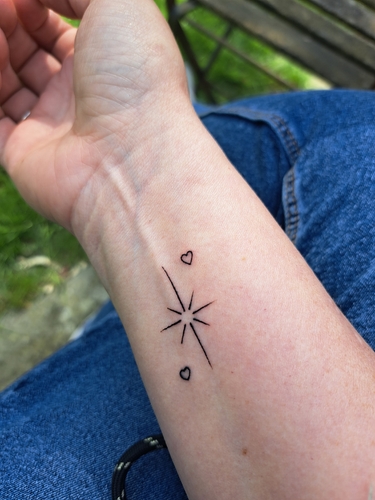 Mooie tekst!! Een vlindertje of sterretje is ook mooi. Toch altijd nog een beetje dichtbij 🫶🏼
