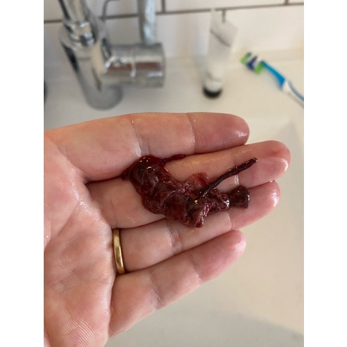 Verder ben ik vooral heel veel, en grote ook, bloedstolsels verloren. Zie foto. Hadden jullie die ook?