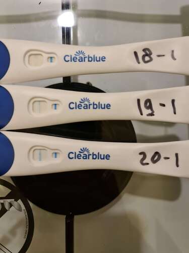 Dit waren mijn testen (ik geloof dat de eerste 2 dagen voor NOD was). Nu inmiddels 31 weken zwanger. Met de action early testte ik ook negatief 🤭 die van action werd pas (heel raar eigenlijk) 2 dagen na NOD positief, vind ze dus ook onbetrouwbaar. Als deze cb binnen afleestijd is vind ik dit zeker geen indroogstreep. Ik zou eens morgen of overmorgen met kruidvat 2v5 testen 🍀 goodluck!