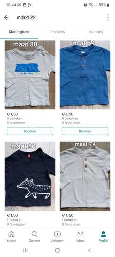 Maat 74 en 80 voor jongens. Met name shirtjes en blousjes. https://www.vinted.nl/member/34814538-melanieofzo
