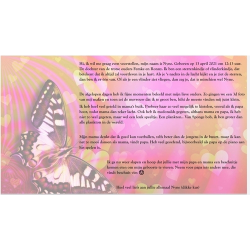 Gefeliciteerd en gecondoleerd met jullie dochter! Wat een mooie tekst heb je namens Nyne geschreven.