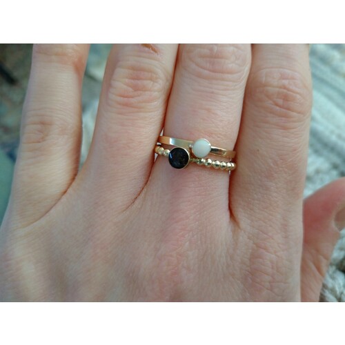 Een asring (antraciet, lijkt zwart op foto) in combinatie met een moedermel ...