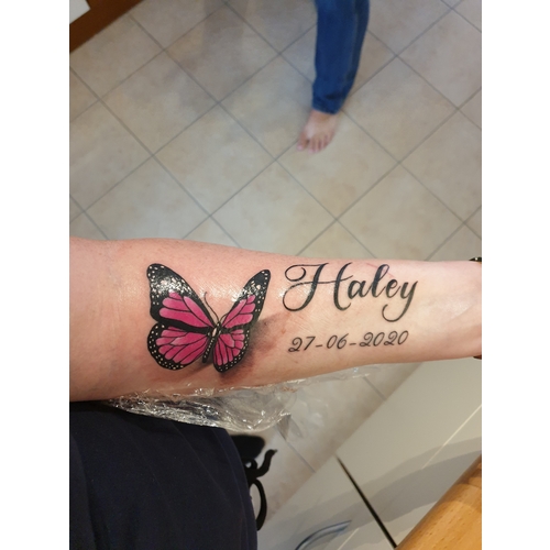 Prachtige tatoeage! Wij hebben ook een (bonte) vlinderstruik in onze tuin staan, was de bedoeling om dan aan m'n partner zijn moeder te denken maar nu denken we ook aan Vlinder als we deze struik weer zien staan 🥰