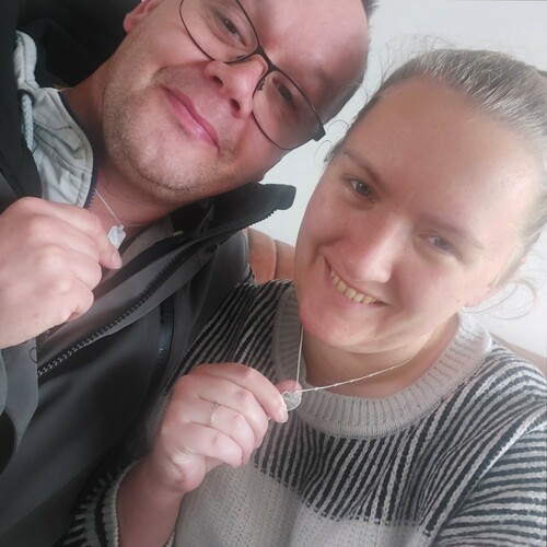 Mijn man en ik hebben allebei een asketting waar een klein beetje as in verwerkt is. Zo hebben we haar altijd bij ons.