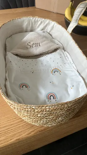 Vooraf hadden wij via Klein Afscheid een mandje gekozen, omdat ik ineens bang was dat het ziekenhuis dekentje/mandje lelijk zou zijn, en ik mijn kind niet het gevoel wilde geven dat ik haar niets waard vond ofzo. Totaal een gevoelsding en niet rationeel verder, maar achteraf nog steeds blij met onze keuze voor dit mandje!